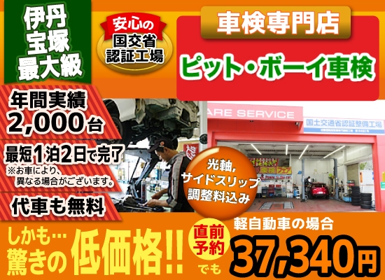 宝塚 伊丹の格安車検3.7万!宝塚 伊丹で車検年2千台